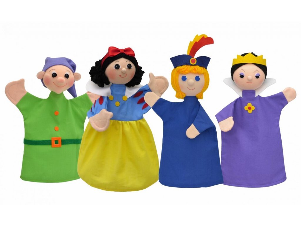 Kde bylo tam bylo, byla jednou jedna Sněhurka, která měla pleť bílou jako sníh, vlasy černé jako ebenové dřevo a ústa červená jako krev. Vymyslete si se sadou maňásků různá dobrodružství a příběhy a promluvte je svému děťátku. Hraní s loutky výborně stimuluje jejich fantazii a kreativitu a také jim pomáhá začít osmělit se na veřejnosti.