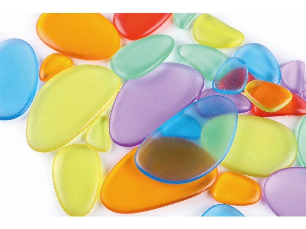 36 priehľadných plastových kamienkov rôznych veľkostí a tvarov